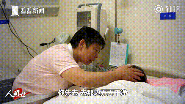 她每天像上班一样,拉着行李去医院照顾老伴,给他洗脚,喂饭,跟他说话,伺候得十分周全。