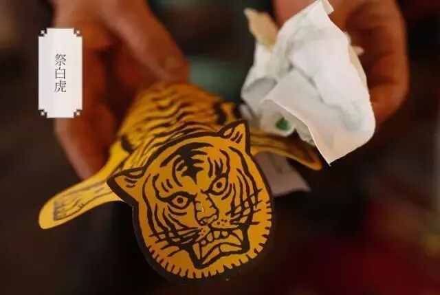 怎么祭呢?其实就是拜祭用纸绘制的老虎。纸老虎一般为黄色黑斑纹,口角画有一对獠牙。拜祭时,需以猪血喂之,意思是使其吃饱后不再出口伤人,继而以生猪肉抹在纸老虎的嘴上,使之充满油水,不能张口说人是非。还有的地方以鸭蛋投食。