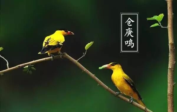 仓庚鸣丨第二个五日,黄鹂最早感春阳之气,嘤其鸣,求其友。仓为青,青为清,庚为更新,“昔我云别,仓庚载鸣”,文人由此也称它“离黄”,“离黄穿树语断续”就成了悲声。