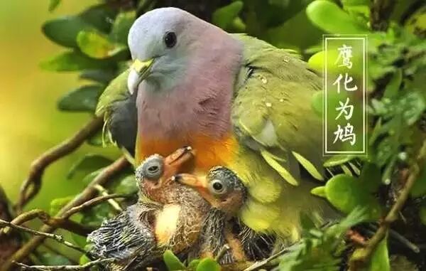 鹰化为鸠丨第三个五日,鹰,鸷鸟也,鸠,即今之布谷,所谓“鹰化为鸠”,指《章龟经》曰:仲春之时,林木茂盛,口啄尚柔,不能捕鸟,瞪目忍饥如痴而化,故名曰鸤鸠。
