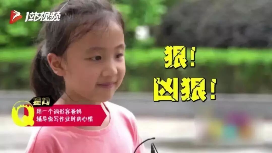 有一个问题是让孩子用一个词形容爸妈在辅导时的心情,一个小姑娘回答是“凶狠”。