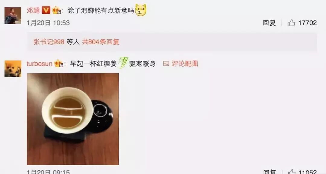 泡脚提醒比天气预报还准时,为此邓超还曾跑到她微博下叫嚣,“除了泡脚还有没有新意”: