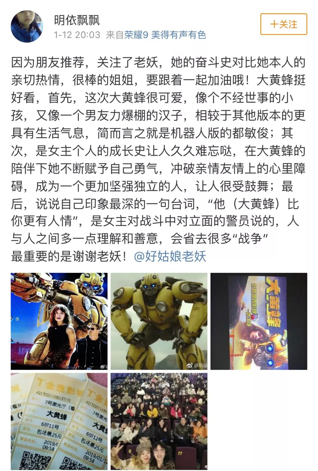 这其中,就有和老妖一样的资深《变形金刚》影迷,他们觉得大黄蜂是一部进化得更棒的电影,不管是女主还是大黄蜂本人都有成长的过程。