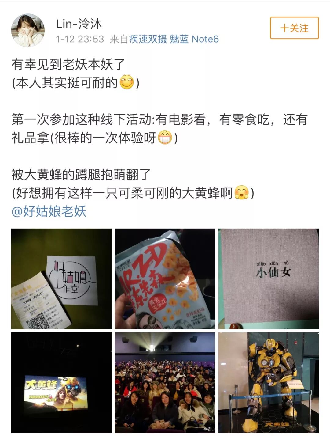 之后,虽然有些害羞的朋友没有在现场和我们分享,但转头就去微博当上了自来水,为大黄蜂打call应援。