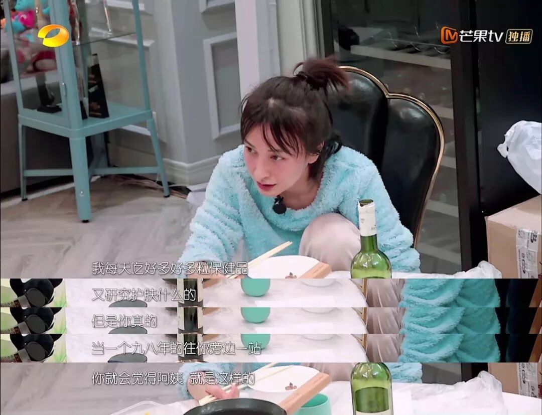 在新开播的《我家那闺女》节目中,她向观众全方位展示了自己宅女的一天:用最贵的化妆品,吃最好的保健品,熬最晚的夜。