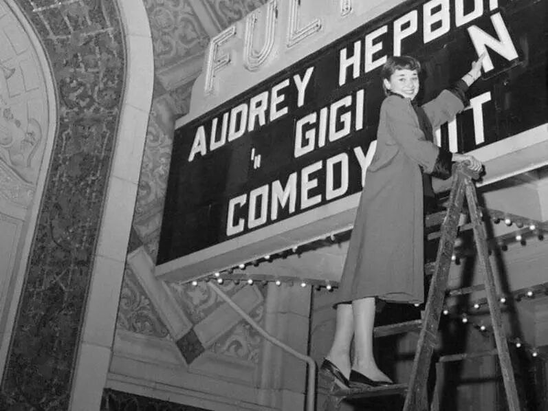 历史上也有许多优秀的照片,诸如20岁的奥黛丽赫本为自己的舞台剧处女作张贴广告。