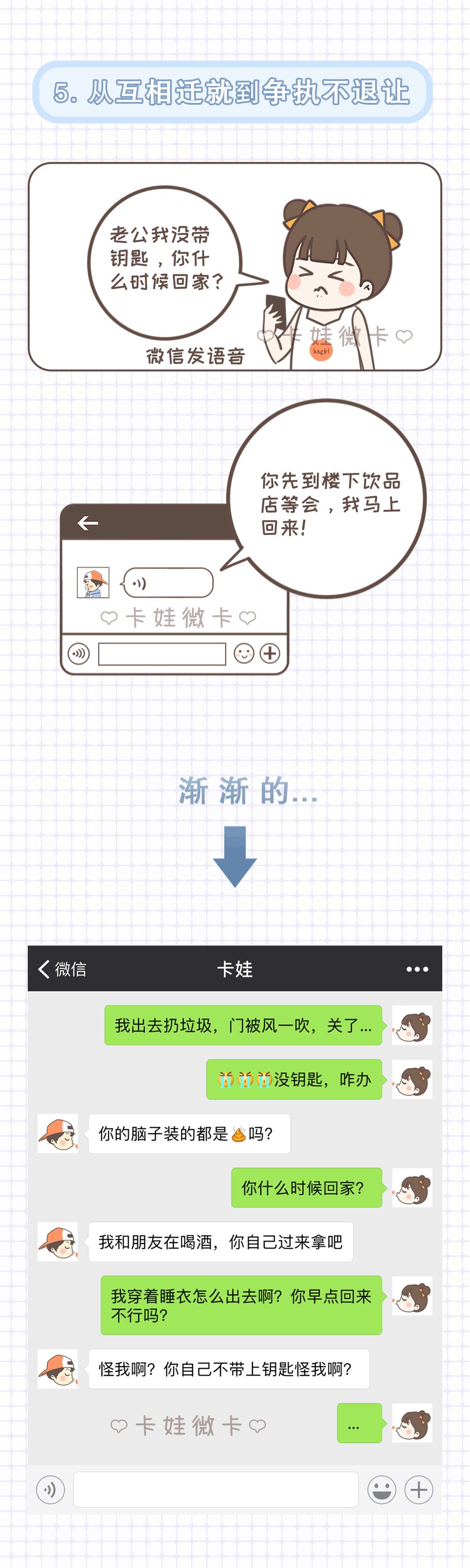 感情中太在乎往最输赢,往后的结局是输了彼此。两个独立的人聚在一起很难不产生矛盾和争执,但是好的婚姻会渐渐磨合,互相迁就。总要争个对错,一天一小吵,三天一大吵,感情再好,也会被渐渐消磨掉。