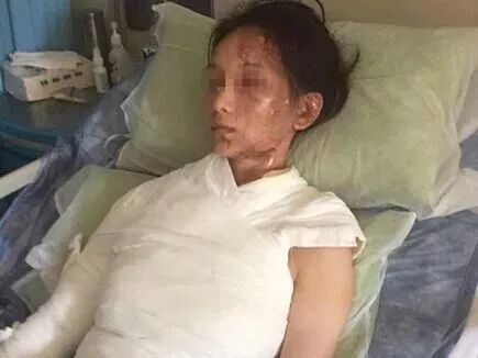 随后,回到后厨,盛了一碗滚烫的开水,走到客人身边直接浇到她头上。