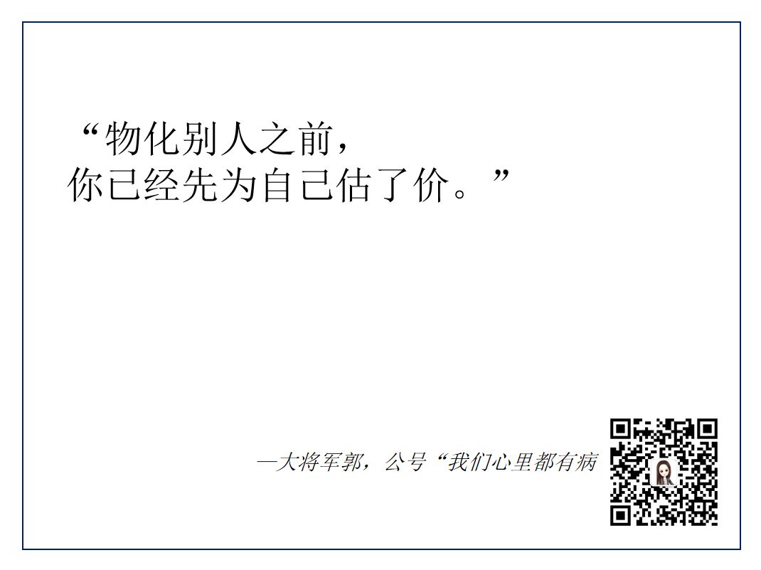 当你觉得自己配得上穿128元以上连衣裙的女朋友,你也不过是把自己定义成了穿128元以上格子衫的男人罢了,物化别人之前,你已经先为自己估了价。