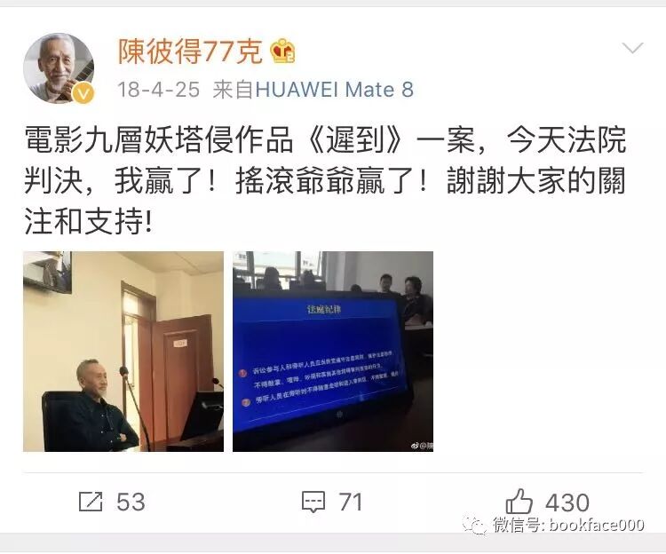 死磕了8个月,案子终于在2018年4月25日有了结果:老爷子胜诉了!
