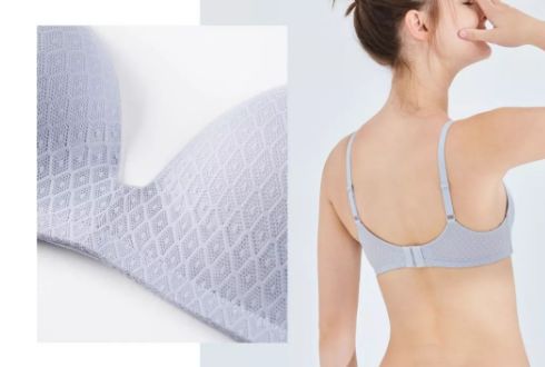 这款最大的特点是:手工针织蕾丝,穿在身上有种不经意的仪式感。在舒适度上,因为侧面没有胶骨而带来“空气感”的穿着体验。同样的轻薄设计,因为是网纱面料,所以透气性也更好,自带吸湿排汗功能,减少细菌无沉积。