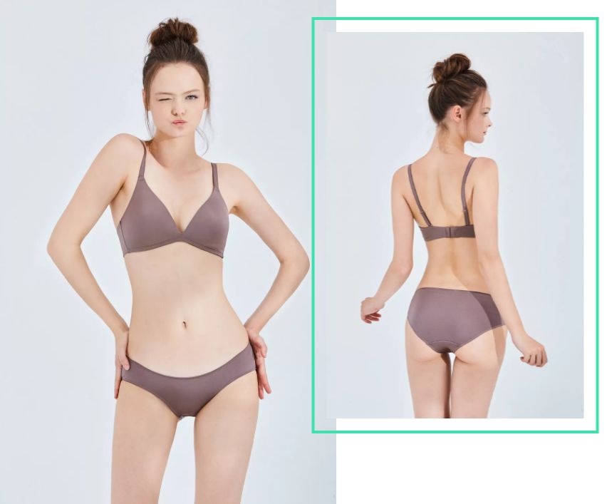 这款很特别,第一眼就会被它吸引。复古的颜色+直角杯的设计,在内衣里并不多见,颜值是全系列最高。