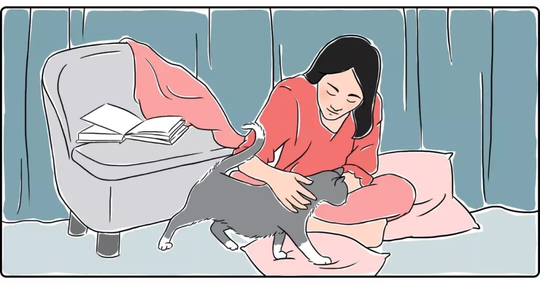 白天上班太忙的她,也只有在晚上才能尽情撸猫,让自己好好放松一下。