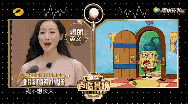 她可以一人分饰两个角色为《海绵宝宝》配音,全英文发音老练地道,语言节奏拿捏精准,情绪控制极其到位。将海绵宝宝经典的爆哭情节演绎出「声浪」的效果,连表情都惊人地一致。