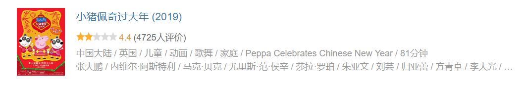 大年初一举家去看动画大电影《小猪佩奇过大年》,剧情却令人大跌眼镜,豆瓣评分连原版动画片一半都不到,只有4.4分。