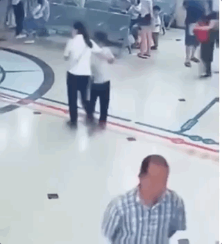 一位大妈不慎落水,大爷见状立马跳到水里救人。
