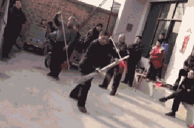 看看下面这位黄衣男子,拿着大菜刀瞎晃悠,不可一世的神态非常狂妄。