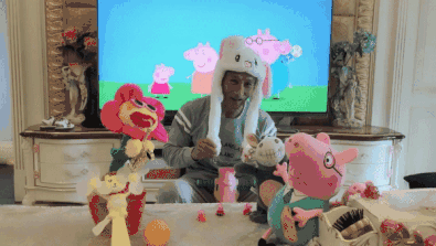 左边一个太阳花,右边一个小佩奇,不要说大爷幼稚,他还是个宝宝。