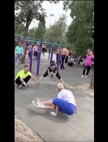 和年轻人健身不同,大爷们总喜欢另辟蹊径。