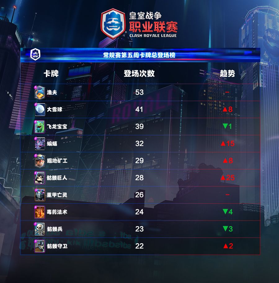 常规赛第五周卡牌登场榜