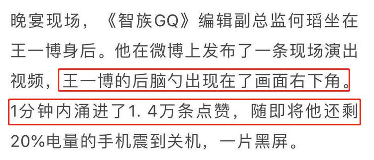 杂志副总监拍摄的现场演出视频中,王一博的后脑勺无意中出现在了画面角落里。