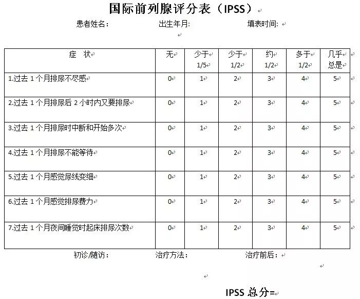 ●0-7分:轻度前列腺增生;