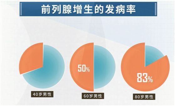 男人到了40岁,患上前列腺增生的概率明显增多,到 60 岁时超过50%的男性患有良性前列腺增生,到80 岁时这个比例高达83%。所以,前列腺增生也是一种身体老化的、不可不变的现象。