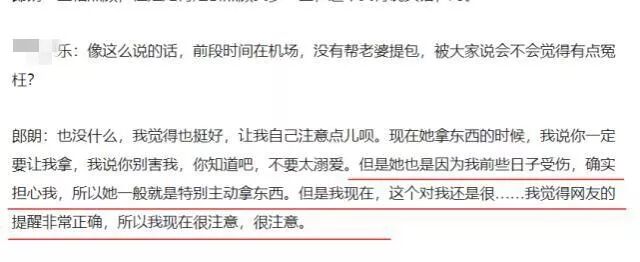 不过,明显看出郎朗还是被网友们说怕了,现在他非常注意这方面的事情:“现在她拿东西的时候,我说你一定要让我拿,我说你别害我,你知道吧,不要太溺爱。”