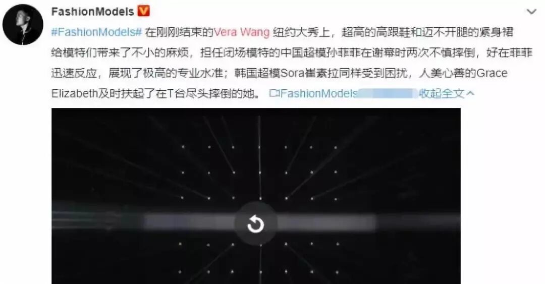 不止孙菲菲,在大秀现场,超高的高跟鞋和紧身裙给别的模特们也带来了不小的麻烦。据某时尚博主透露,韩国超模Sora崔素拉在此次走秀中,走到T台拐弯处突然失去平衡摔倒,与她前后脚走到此处的另一超模Grace Elizabeth及时扶起了在T台尽头摔倒的她。