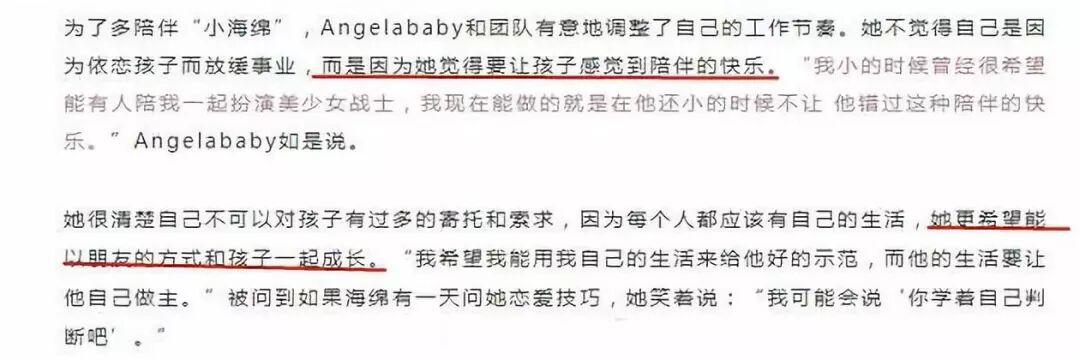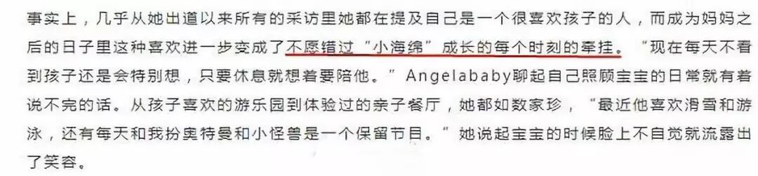 近日,Angelababy在某专访中聊起照顾小海绵的日常。自从2017年于香港顺利生下小海绵以来,Baby就放缓了工作步伐,开始把更多的精力放在带孩子上。她在访谈中说,成为妈妈之后不愿错过孩子成长的每个关键时刻,“只要休息就想着要陪他”,并且希望能以朋友的方式和孩子一起成长。