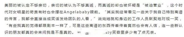 在专访中,Baby还谈到了网上一些“特别离谱的”传言,对于这件事她似乎有些无奈:“我都会直接当成笑话发给团队的人看……这些离谱的东西传着传着竟然也会有人信……”