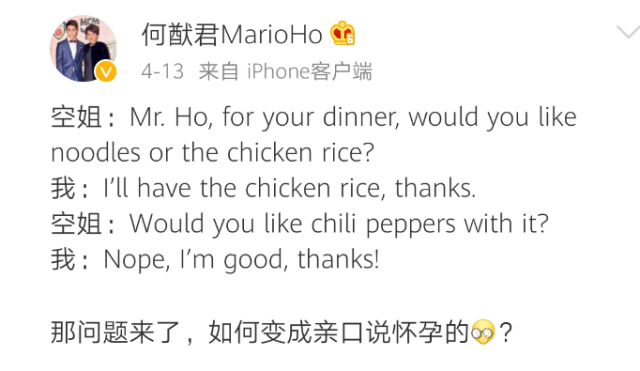 关于奚梦瑶怀孕的传闻,先是4月份时传出两人坐飞机时何猷君亲口承认奚梦瑶怀孕,何猷君随即发文澄清。
