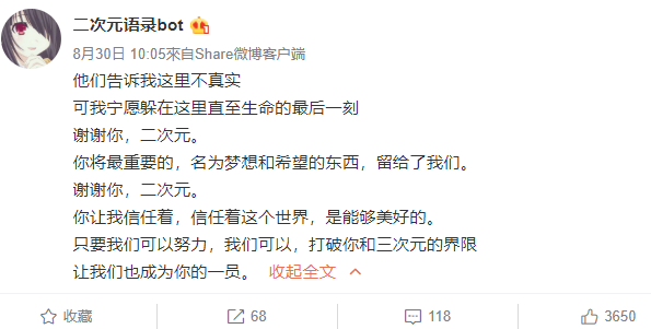 这些自爆勇士,曾表现出对二次元的崇高信仰,与同好之间的日常交流,也充斥着二次元的气息。
