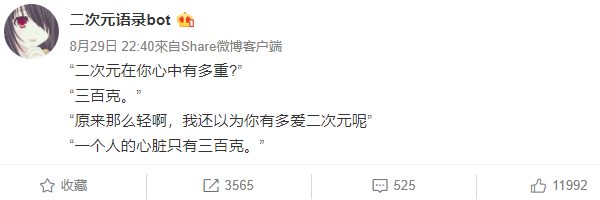 在一个名叫“二次元语录bot”的主页中,聚集了大量充满年代感的二次元发言,由于“太过真实”,代入感强烈,每一句都能把你辣到面红耳赤。