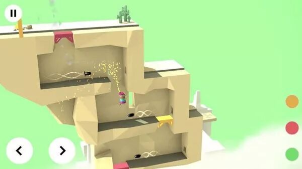 核心玩法是不同眼光看世界,右侧有几种颜色的变化按钮,选中颜色的道具会消失,通过切换颜色变化场景障碍,寻找最便捷的通关方式。游戏有星星机制,收集足够多星星才能解锁关卡。