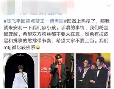 维护自己的爱豆本来无可厚非,但是跑到人家爸爸微博底下让他好好管教自己的儿子这种行为,未免也太不理智了,还给爱豆招黑。说到底,这两位都是成年人了,并且有各自的团队,就算他们之间真有什么纠纷,人家也都能解决。在对待有关爱豆的事情上,作为粉丝最重要的一点还是“理智”,理智追星,理智护崽,理智吃瓜。