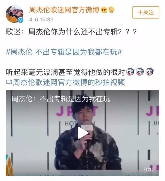 粉丝为什么会这么激动呢?因为……周杰伦已经一年没出新歌,三年没出新专辑了啊!上一次发歌还要追溯到去年五月份的《不爱我就拉倒》。