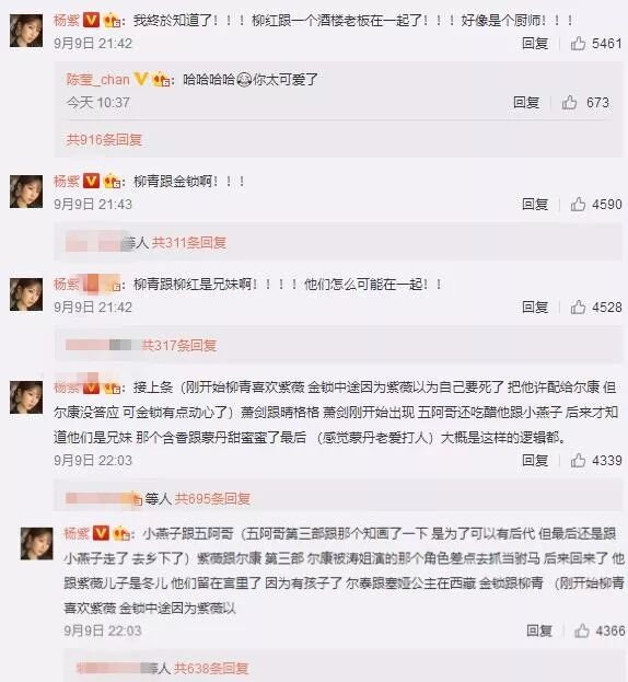 昨晚(9月9日),杨紫又连发数条评论补习《还珠格格》,终于理清了所有人物关系。