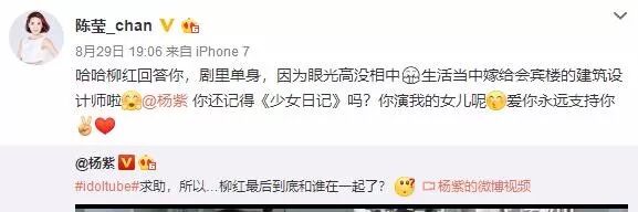知道自己弄错了之后,杨紫也发微博在线疑惑:“求助,所以…柳红最后到底和谁在一起了? ”