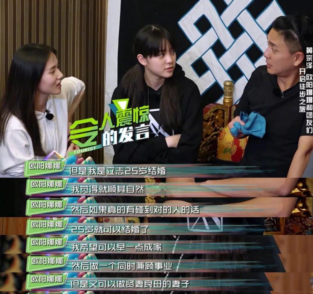 而欧阳娜娜最近的表现恰好符合。在节目里,先是说自己想在25岁的时候结婚。
