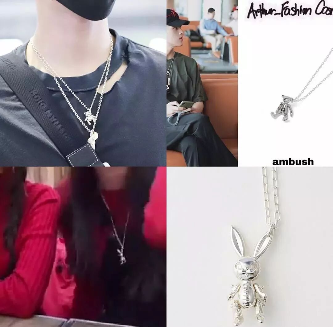 那个玩偶乍一看可能就是巧合哈,但这俩人还带过一款同款项链,那个项链也是一个是熊,一个是小兔子。