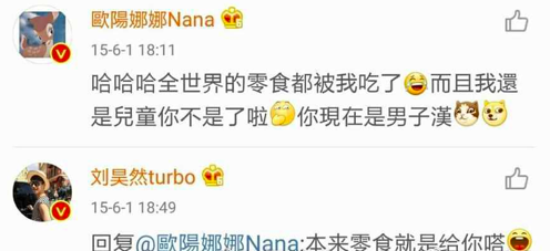 而且当时还曾经流出来一个梗,说刘昊然的日常就是:吃饭、睡觉、欧阳娜娜。