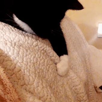 比如下面这个,猫主人在毯子下动了动,镜头已经拍不清猫咪的爪子,但据狂丸的目测,毯子动一次,猫咪差不多挥舞了六次,这个速度,还能说什么呢?