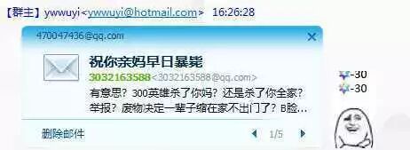 最后事态演变成了直接在QQ辱骂和骚扰爽哥,甚至还有发邮件讨说法,上门要打爽哥的。