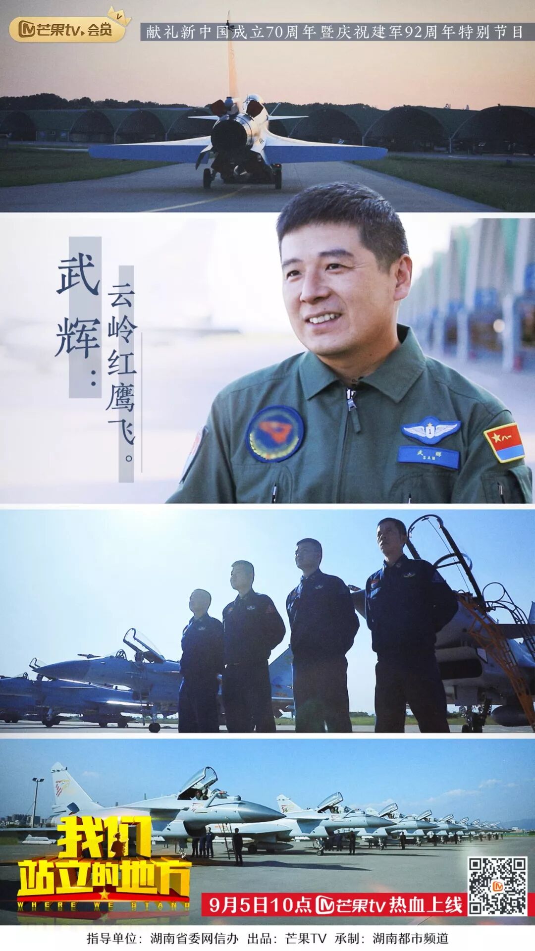 - 由芒果TV出品、湖南都市频道承制的献礼新中国成立70周年暨庆祝建军92周年特别节目《我们站立的地方》每周四上午10点在芒果TV热血播出。 本期节目讲述的是战斗机飞行员武辉的故事。有着这样一支战机部队