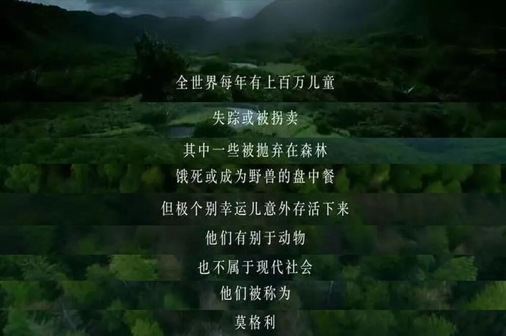 男主莫格利是生存在森林里的狼孩,设定不一般,出场方式也不一般。