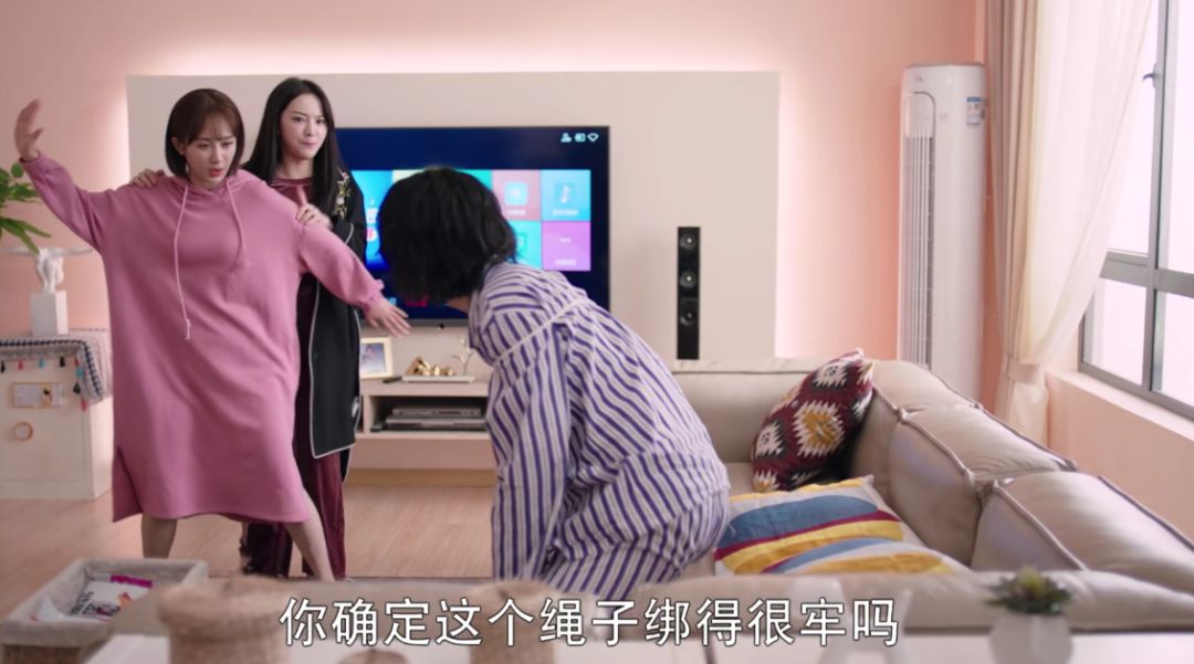 女主出于自保,用根细绳子把男主绑了预防他干坏事,不过就这种绑法真的是认真的吗?