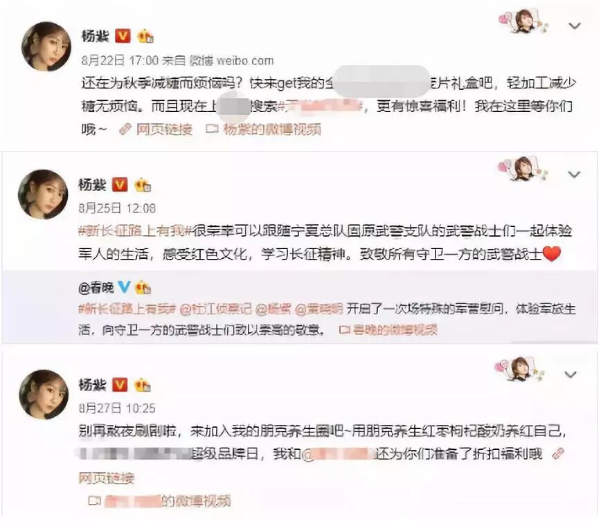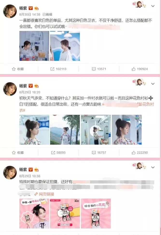 而最近没有微博宣传是因为网络纷争太多,她的微博除了代言广告基本上已经什么都不发了。