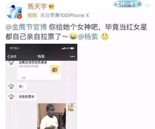 这和杨紫的习惯、性格有些不搭。当初金鹰奖最佳演员投票的时候,杨紫找了马天宇拉票。
