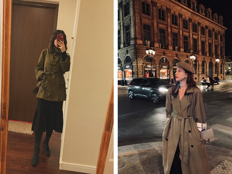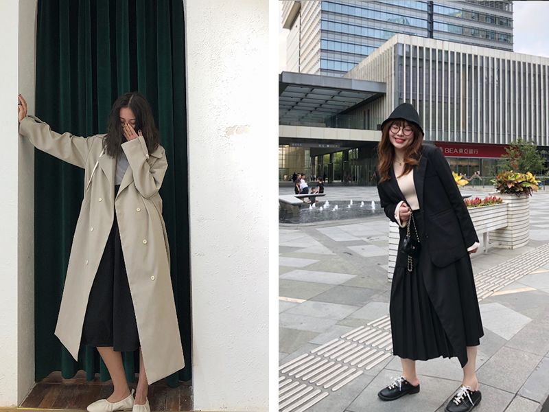 特别是今年炒鸡流行的中长风衣+超长款内搭的搭配,推荐小仙女都来尝试。